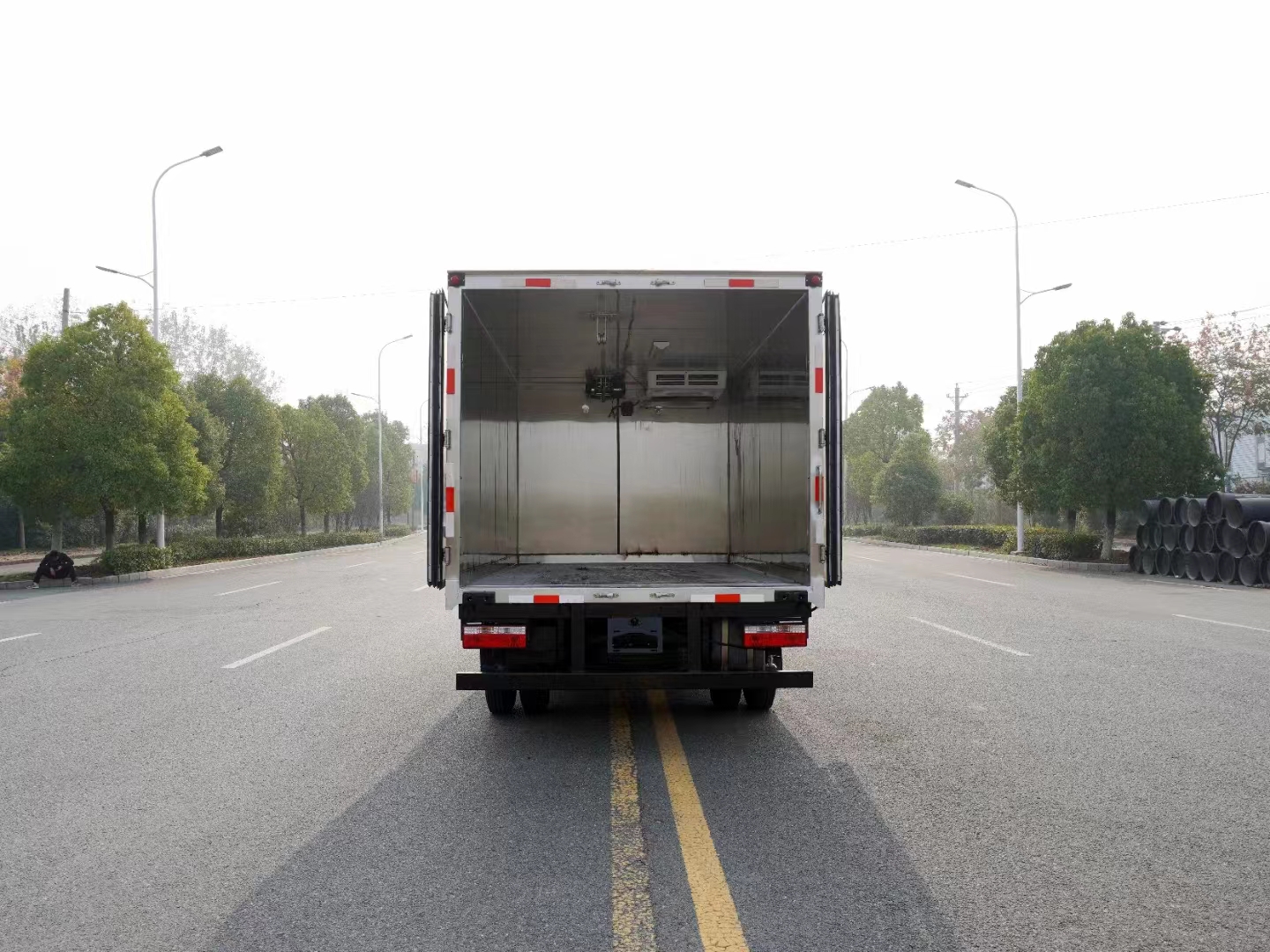 制冷系統(tǒng):病死豬運(yùn)輸車是由車載制冷機(jī)組實(shí)現(xiàn)無(wú)害化處理車內(nèi)部空間氣體的流通和衡溫,為保證病死豬在運(yùn)輸過(guò)程中對(duì)溫度的要求,保證車廂內(nèi)溫度維持在-5°到-15°,有效減弱疫情病原的活性,保證工作人員的生命安全,在駕駛室就能實(shí)時(shí)監(jiān)測(cè)到車廂內(nèi)溫度的變化,便于控制溫度。