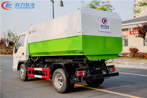 箱體采用邊三底四優質鋼板制作,箱體前部側面帶有掛桶提升機構,可搭配120升或240升塑料垃圾桶,自動舉升垃圾桶倒入垃圾,提 升機頂部機械翻蓋,箱體底部雙液壓缸舉升自卸,箱體后方設有擋水槽,尾部裝有橡膠密封條,防污水滴漏。