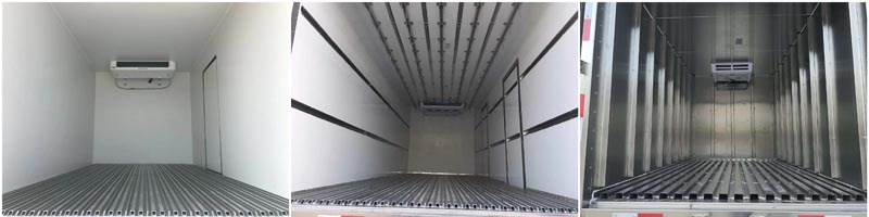 十 選裝配置:可選裝廂體側(cè)門(單側(cè)門或雙開門),可選裝鋁合金導(dǎo)風(fēng)槽(導(dǎo)風(fēng)槽有助于冷氣循環(huán),提升制冷效果),可選裝廂體頂部加固肉勾滑道(直滑道 或 對(duì)接互通式拐彎滑道)??蛇x裝廂體內(nèi)部采用全面不銹鋼材質(zhì)(海鮮運(yùn)輸必須加裝,海水有腐蝕性),可選裝280V-380V外接電源(停車熄火后可插電冷機(jī)繼續(xù)制冷工作),可選裝溫濕度監(jiān)控記錄儀(帶打印功能)。