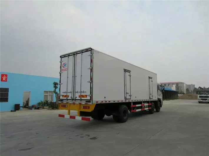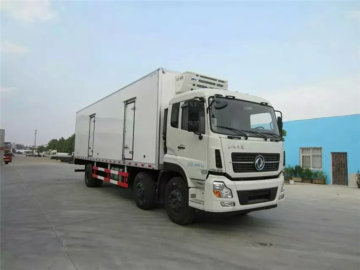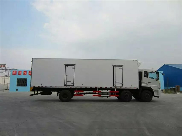 東風天龍小三軸冷藏車底盤配置: 東風天龍小三軸冷藏車采用東風天龍專用底盤,東風天龍通過國際合作,融合了當今世界先進技術,并在研發過程中實現了大量的自主創新,使整車各個系統的性能全面提升,尤其在技術、安全性、經濟性、可靠性、舒適性等方面的表現突出。其配備康明斯(國五)270馬力發動機,陜齒9檔變速箱,5.5噸雙前橋,10噸后橋,有方向助力、離合助力、駕駛室液壓電動翻轉、電動門窗、中控門鎖、ABS、巡航系統,輪胎11.00R20, 廂體配置: 廂體采用聚酯濕法制板工藝和玻璃纖維加強全木廂體框架結構,全封閉聚氨酯板塊粘接法;保溫性能達到國家A級標準。 廂板材質:內外壁板選用國內優質的2.5mm納米玻璃鋼(不吸光、隔熱性好、硬度強、抗氧化);中間保溫材料為無空隙填充進口聚氨酯發泡;廂體厚度80mm,門厚度80mm;廂體底部為鋁合金花紋板或選平面納米玻璃鋼; 配件:廂體周邊鋁合金包邊,不銹鋼包角,不銹鋼門鎖,防碰膠皮4塊,不銹鋼門框, 不銹鋼合頁,箱內節能照明燈; 廂體厚度可選100mm、120mm,內外壁板可選裝玻璃鋼、彩鋼板、不銹鋼、鋁合金。