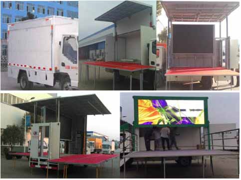 | 配置 | 該車是進行舞臺文藝表演的專用車輛。車輛顏色可選;文字噴涂位置可變化。車廂頂棚封閉,并采用衍架結構,可升降,車廂兩側板可選裝液壓展開,與頂棚形成整車舞臺頂棚;活動舞臺板可折疊于車廂內,通過展開裝置展后與固定舞臺臺面形成整車舞臺臺面; 可根據用戶要求選裝導流罩,頂板延伸遮陽板;選裝左右LED屏舉升或不舉升,選裝廣告燈箱或者條屏,選裝后部雙開門或者左單開門或者右單開門,后部可選裝液壓升降尾板;底盤大梁部分選裝支撐裝置。防護材料:Q235A碳鋼,連接方式:左右側面及后下部防護均采用焊接連接,后部防護斷面尺寸(mm):100?0,后部防護離地高度(mm):430。ABS控制器型號及生產企業:CM4XL-4S/4M,廣州科密汽車電子控制技術股份有限公司; | ||