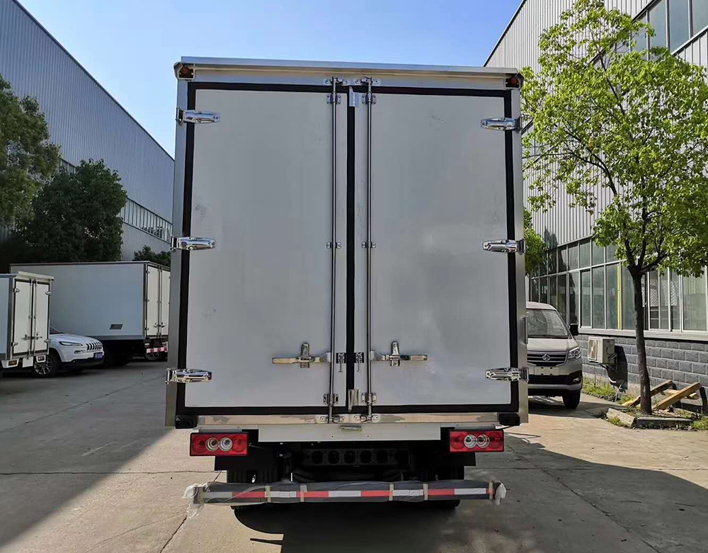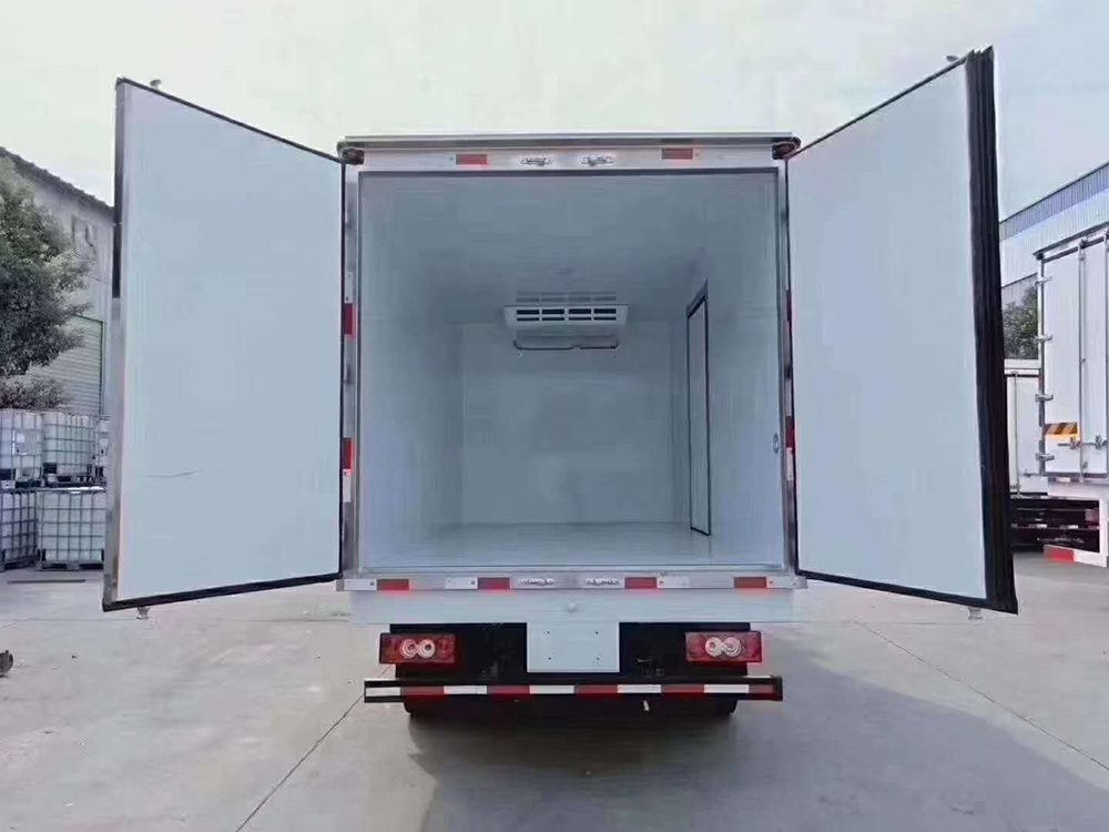 三、選裝配置:可選裝廂體側(cè)門(單側(cè)門或雙開門),可選裝鋁合金導(dǎo)風(fēng)槽(導(dǎo)風(fēng)槽有助于冷氣循環(huán),提升制冷效果),可選裝廂體頂部加固肉勾滑道(直滑道 或 對接互通式拐彎滑道)。可選裝廂體內(nèi)部采用全面不銹鋼材質(zhì)(海鮮運輸必須加裝,海水有腐蝕性),可選裝280V-380V外接電源(停車熄火后可插電冷機繼續(xù)制冷工作),可選裝溫濕度監(jiān)控記錄儀(帶打印功能)。