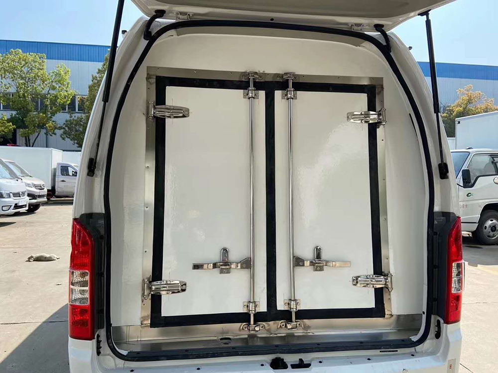 一、廂體配置:我公司面包式冷藏車工藝采用專用模具壓制成型,保溫性能達到國家A級標準,保溫材料為無縫隙填充聚氨酯發泡,廂體內外采用高強度玻璃鋼板材質,樹脂膠無縫連接,后配全密封雙開門,不銹鋼門框包邊,不銹鋼合頁和鎖件,廂體內部加裝LED夜間照明燈。