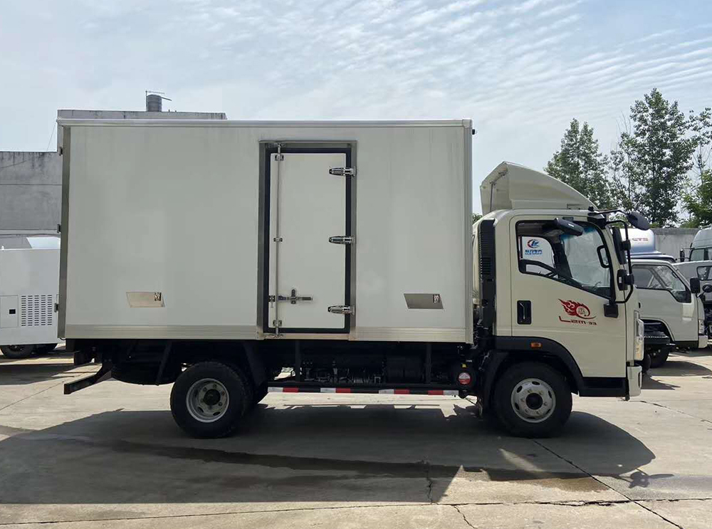 三、選裝配置:可選裝廂體側門(單側門或雙開門),可選裝鋁合金導風槽(導風槽有助于冷氣循環,提升制冷效果),可選裝廂體頂部加固肉勾滑道(直滑道 或 對接互通式拐彎滑道)。可選裝廂體內部采用全面不銹鋼材質(海鮮運輸必須加裝,海水有腐蝕性),可選裝280V-380V外接電源(停車熄火后可插電冷機繼續制冷工作),可選裝溫濕度監控記錄儀(帶打印功能)。