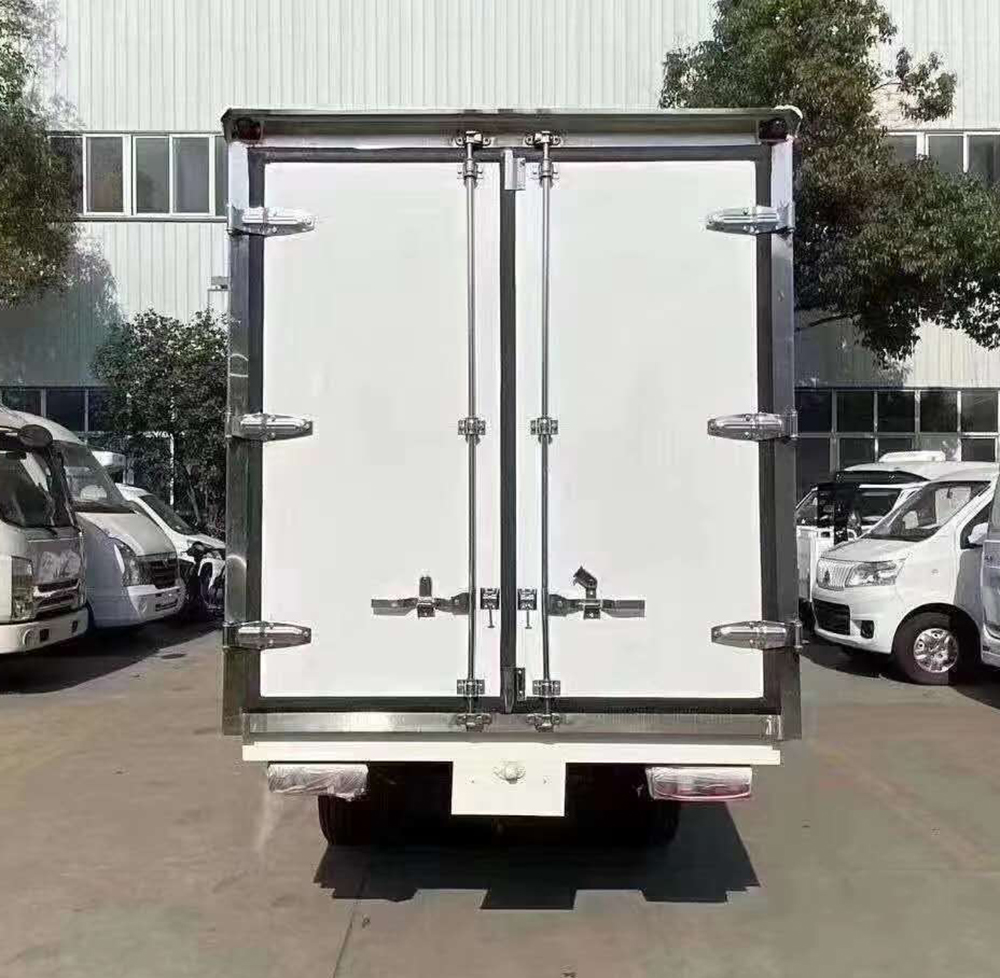 三、選裝配置:可選裝廂體側(cè)門(單側(cè)門或雙開(kāi)門),可選裝鋁合金導(dǎo)風(fēng)槽(導(dǎo)風(fēng)槽有助于冷氣循環(huán),提升制冷效果),可選裝廂體頂部加固肉勾滑道(直滑道 或 對(duì)接互通式拐彎滑道)。可選裝廂體內(nèi)部采用全面不銹鋼材質(zhì)(海鮮運(yùn)輸必須加裝,海水有腐蝕性),可選裝280V-380V外接電源(停車熄火后可插電冷機(jī)繼續(xù)制冷工作),可選裝溫濕度監(jiān)控記錄儀(帶打印功能)。