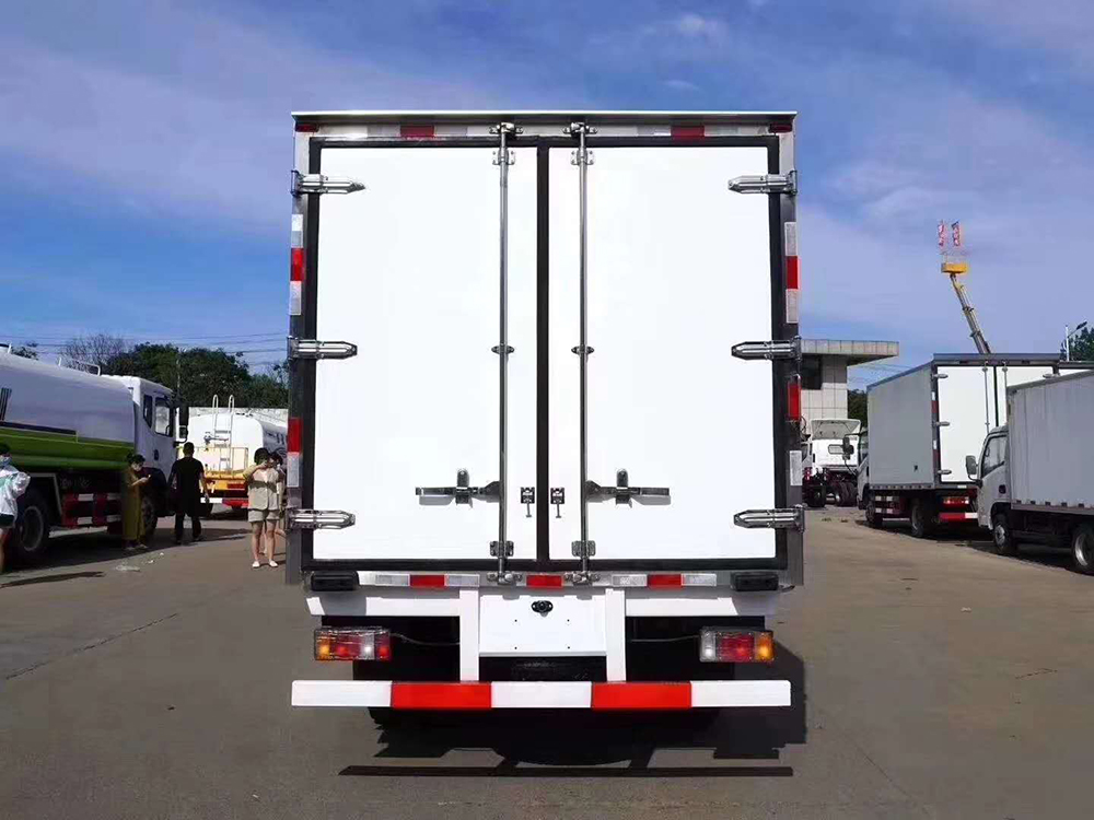 三、選裝配置:可選裝廂體側(cè)門(單側(cè)門或雙開門),可選裝鋁合金導(dǎo)風(fēng)槽(導(dǎo)風(fēng)槽有助于冷氣循環(huán),提升制冷效果),可選裝廂體頂部加固肉勾滑道(直滑道 或 對接互通式拐彎滑道)。可選裝廂體內(nèi)部采用全面不銹鋼材質(zhì)(海鮮運輸必須加裝,海水有腐蝕性),可選裝280V-380V外接電源(停車熄火后可插電冷機(jī)繼續(xù)制冷工作),可選裝溫濕度監(jiān)控記錄儀(帶打印功能)。