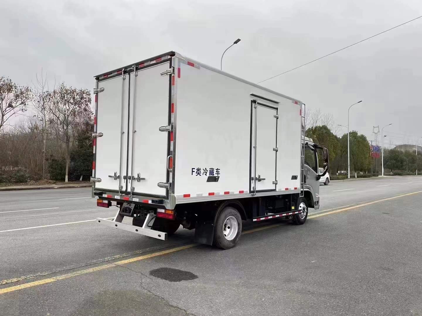 三、選裝配置:可選裝廂體側門(單側門或雙開門),可選裝鋁合金導風槽(導風槽有助于冷氣循環(huán),提升制冷效果),可選裝廂體頂部加固肉勾滑道(直滑道 或 對接互通式拐彎滑道)??蛇x裝廂體內(nèi)部采用全面不銹鋼材質(zhì)(海鮮運輸必須加裝,海水有腐蝕性),可選裝280V-380V外接電源(停車熄火后可插電冷機繼續(xù)制冷工作),可選裝溫濕度監(jiān)控記錄儀(帶打印功能)。