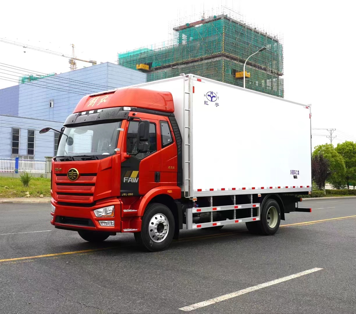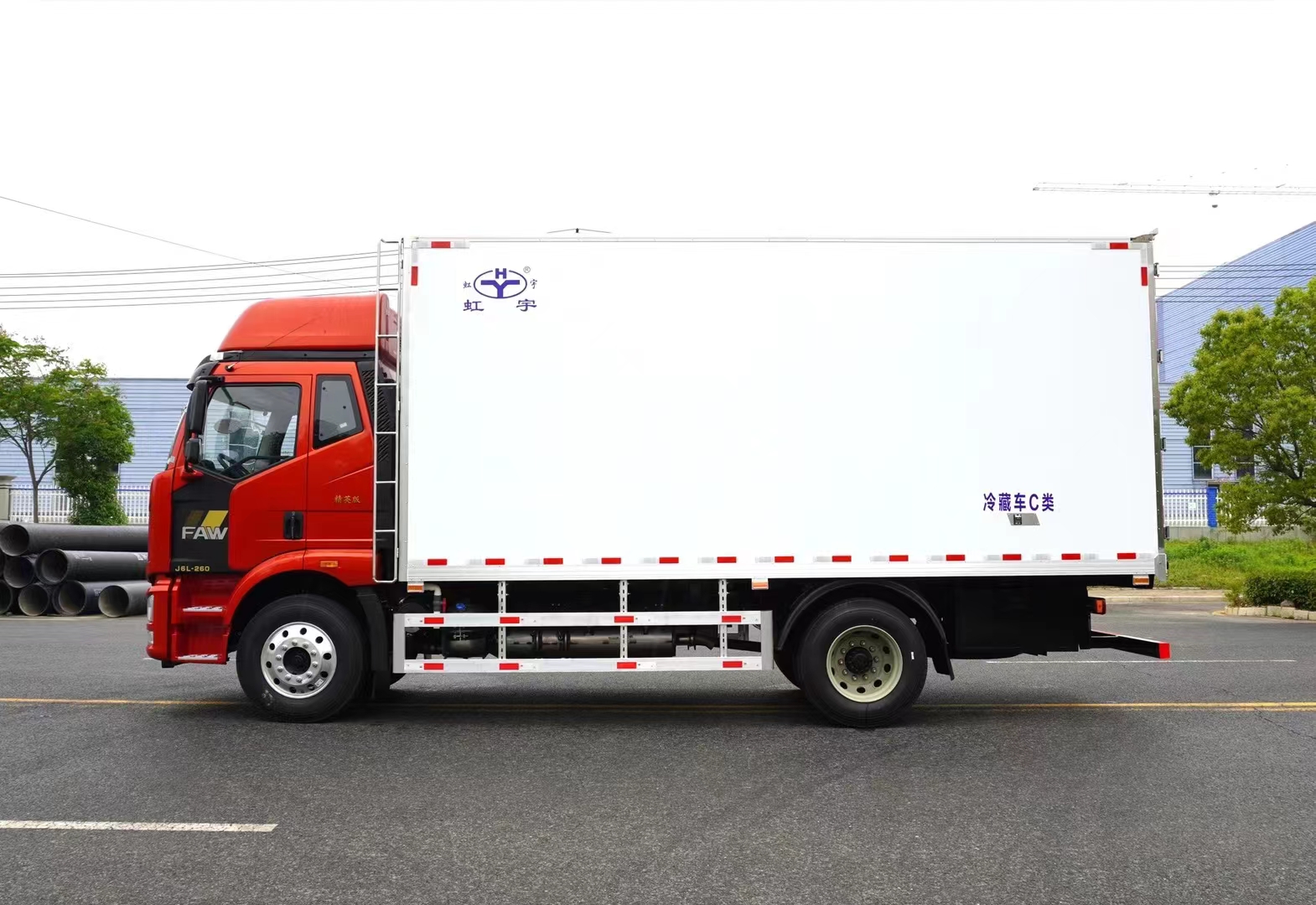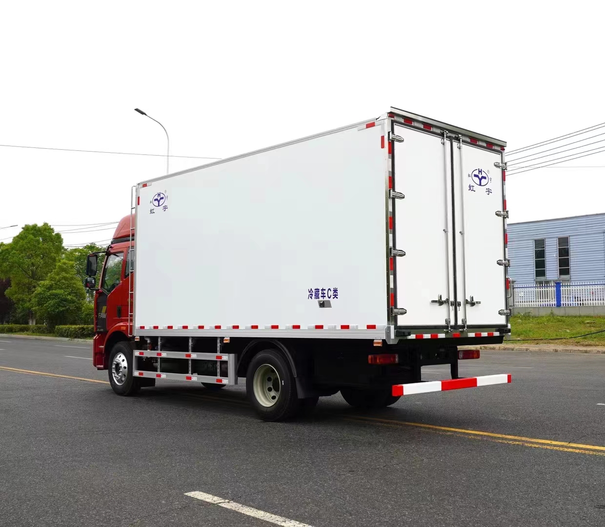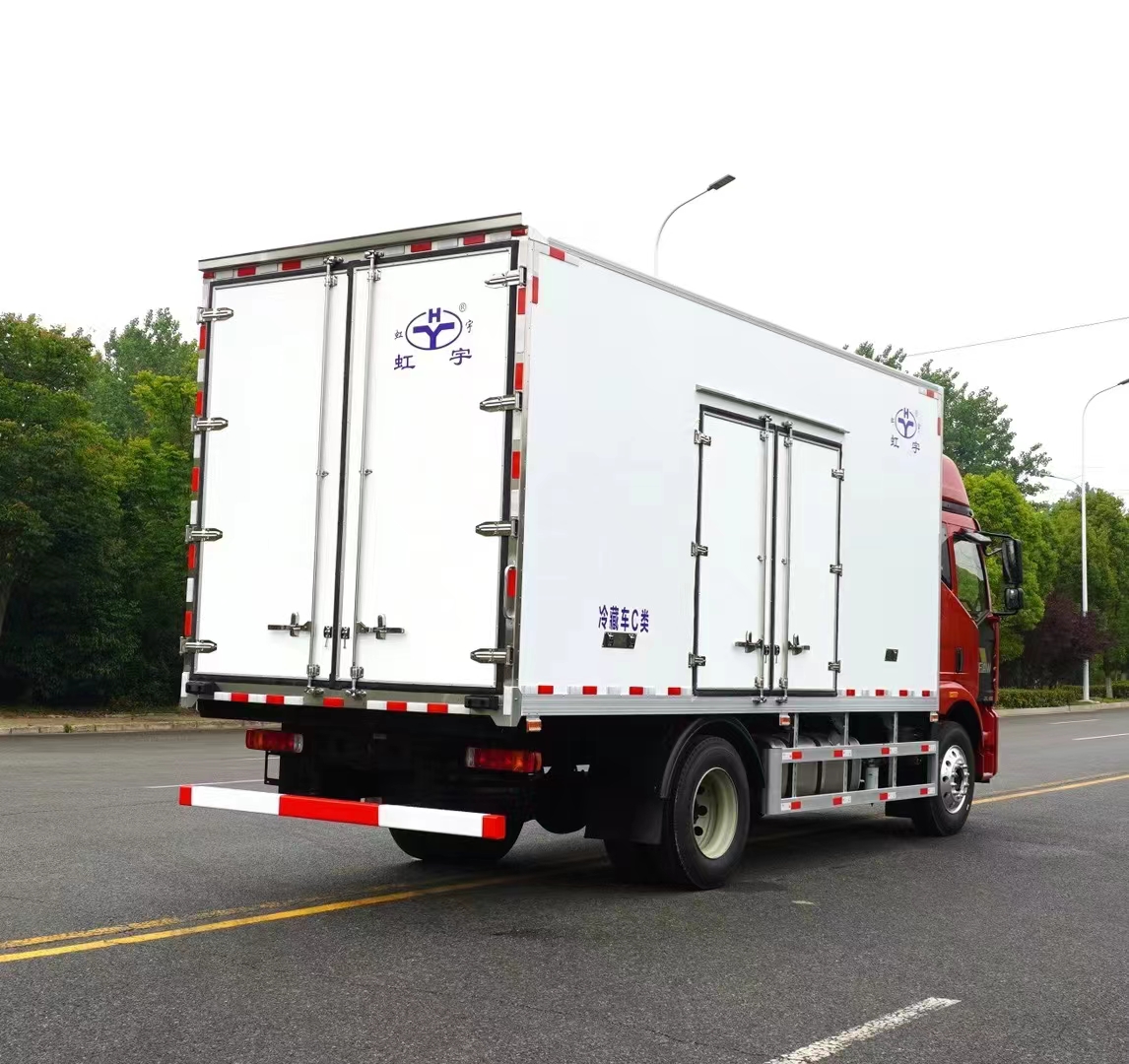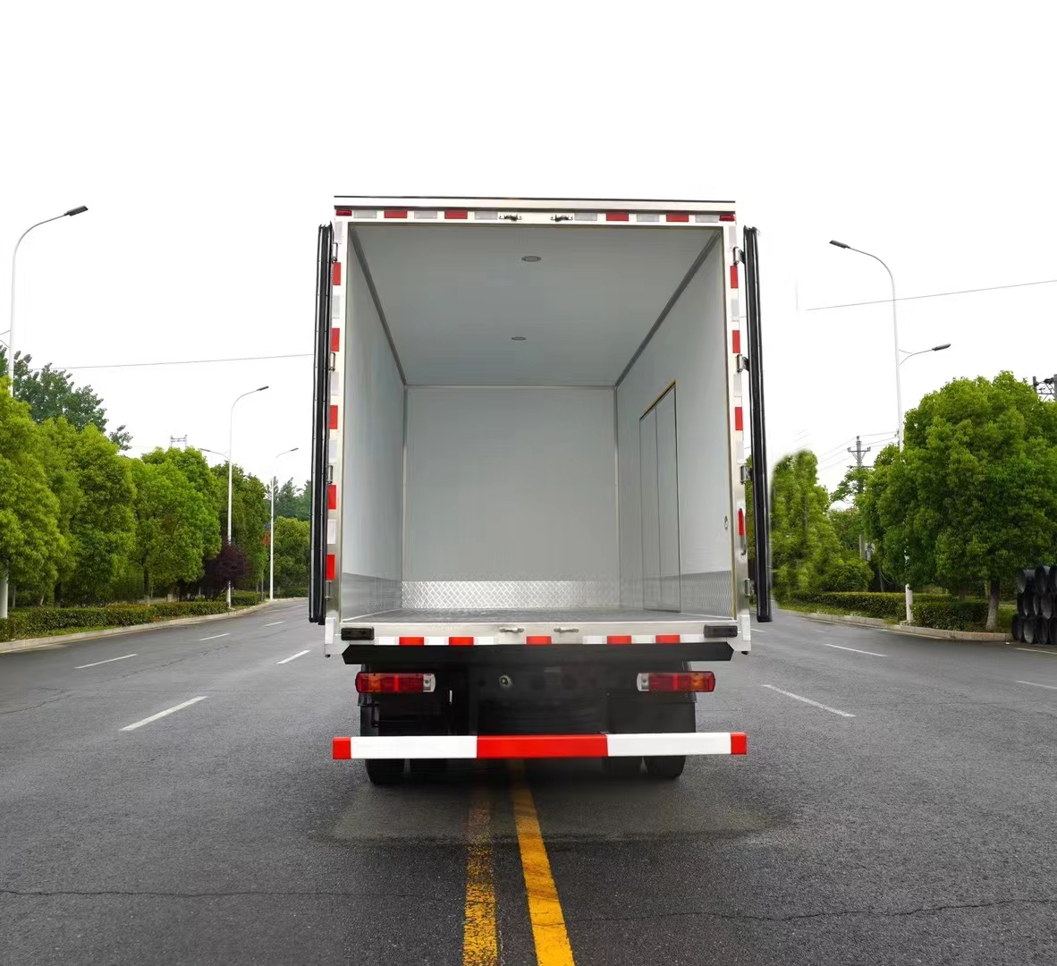 三、選裝配置:可選裝廂體側門(單側門或雙開門),可選裝鋁合金導風槽(導風槽有助于冷氣循環(huán),提升制冷效果),可選裝廂體頂部加固肉勾滑道(直滑道 或 對接互通式拐彎滑道)。可選裝廂體內部采用全面不銹鋼材質(海鮮運輸必須加裝,海水有腐蝕性),可選裝280V-380V外接電源(停車熄火后可插電冷機繼續(xù)制冷工作),可選裝溫濕度監(jiān)控記錄儀(帶打印功能)。