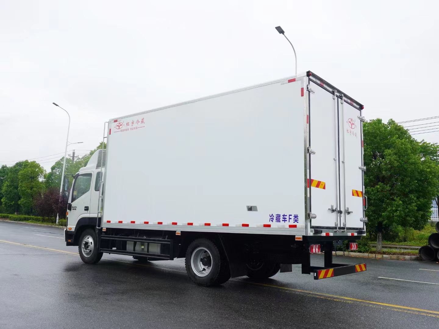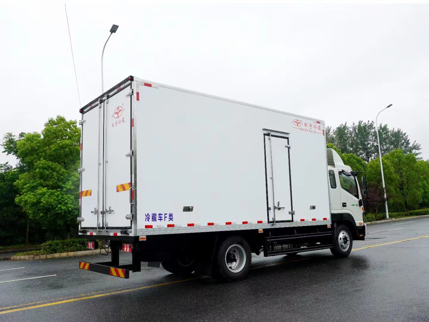 三、選裝配置:可選裝廂體側(cè)門(單側(cè)門或雙開門),可選裝鋁合金導(dǎo)風(fēng)槽(導(dǎo)風(fēng)槽有助于冷氣循環(huán),提升制冷效果),可選裝廂體頂部加固肉勾滑道(直滑道 或 對(duì)接互通式拐彎滑道)。可選裝廂體內(nèi)部采用全面不銹鋼材質(zhì)(海鮮運(yùn)輸必須加裝,海水有腐蝕性),可選裝280V-380V外接電源(停車熄火后可插電冷機(jī)繼續(xù)制冷工作),可選裝溫濕度監(jiān)控記錄儀(帶打印功能)。