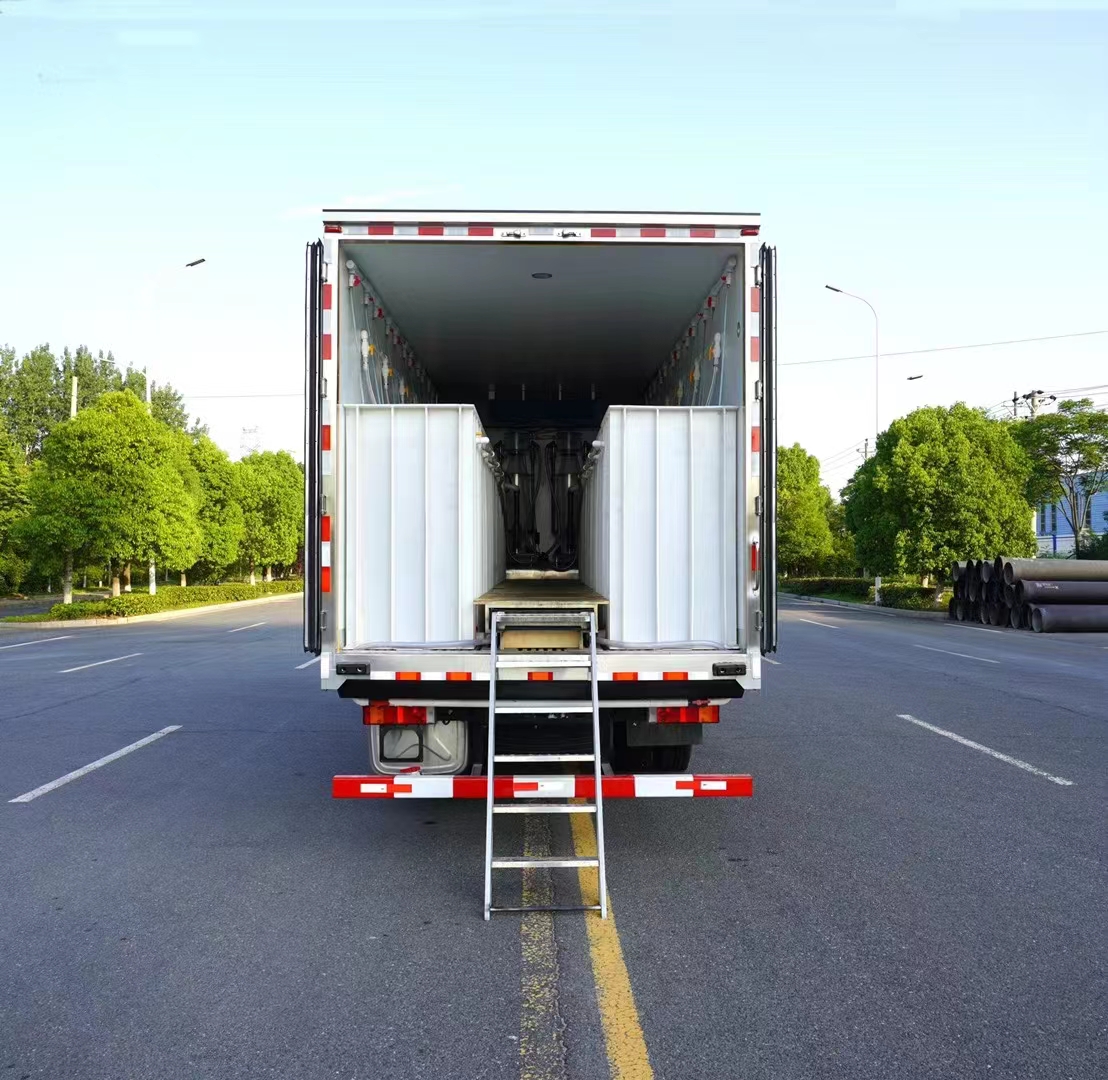 三、選裝配置:可選裝廂體側(cè)門(單側(cè)門或雙開門),可選裝鋁合金導風槽(導風槽有助于冷氣循環(huán),提升制冷效果),可選裝廂體頂部加固肉勾滑道(直滑道 或 對接互通式拐彎滑道)。可選裝廂體內(nèi)部采用全面不銹鋼材質(zhì)(海鮮運輸必須加裝,海水有腐蝕性),可選裝280V-380V外接電源(停車熄火后可插電冷機繼續(xù)制冷工作),可選裝溫濕度監(jiān)控記錄儀(帶打印功能)。