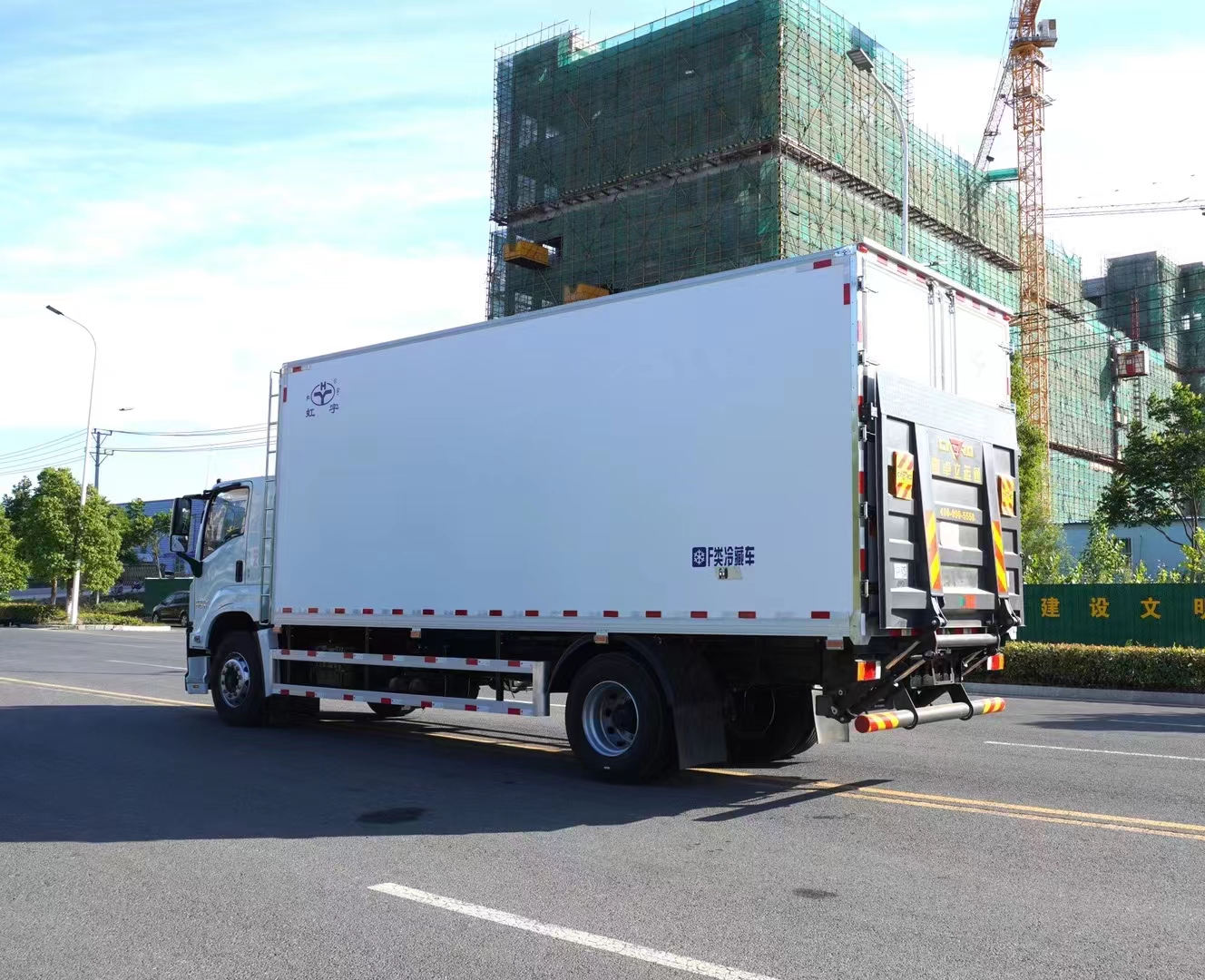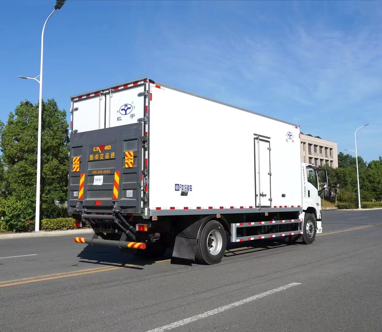 三、選裝配置:可選裝廂體側門(單側門或雙開門),可選裝鋁合金導風槽(導風槽有助于冷氣循環,提升制冷效果),可選裝廂體頂部加固肉勾滑道(直滑道 或 對接互通式拐彎滑道)。可選裝廂體內部采用全面不銹鋼材質(海鮮運輸必須加裝,海水有腐蝕性),可選裝280V-380V外接電源(停車熄火后可插電冷機繼續制冷工作),可選裝溫濕度監控記錄儀(帶打印功能)。