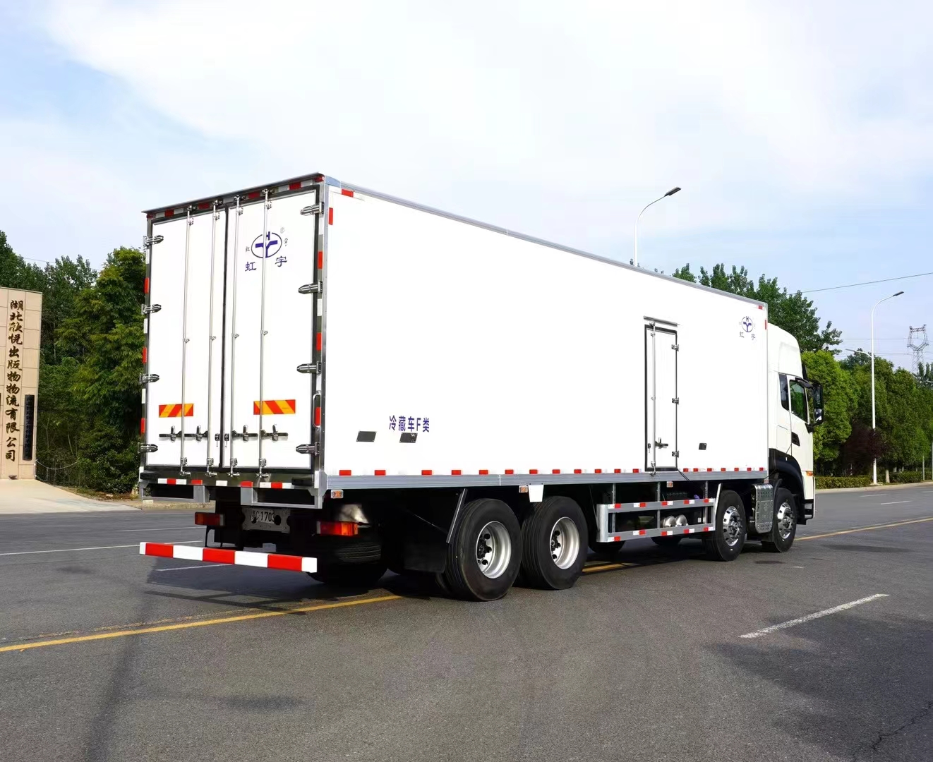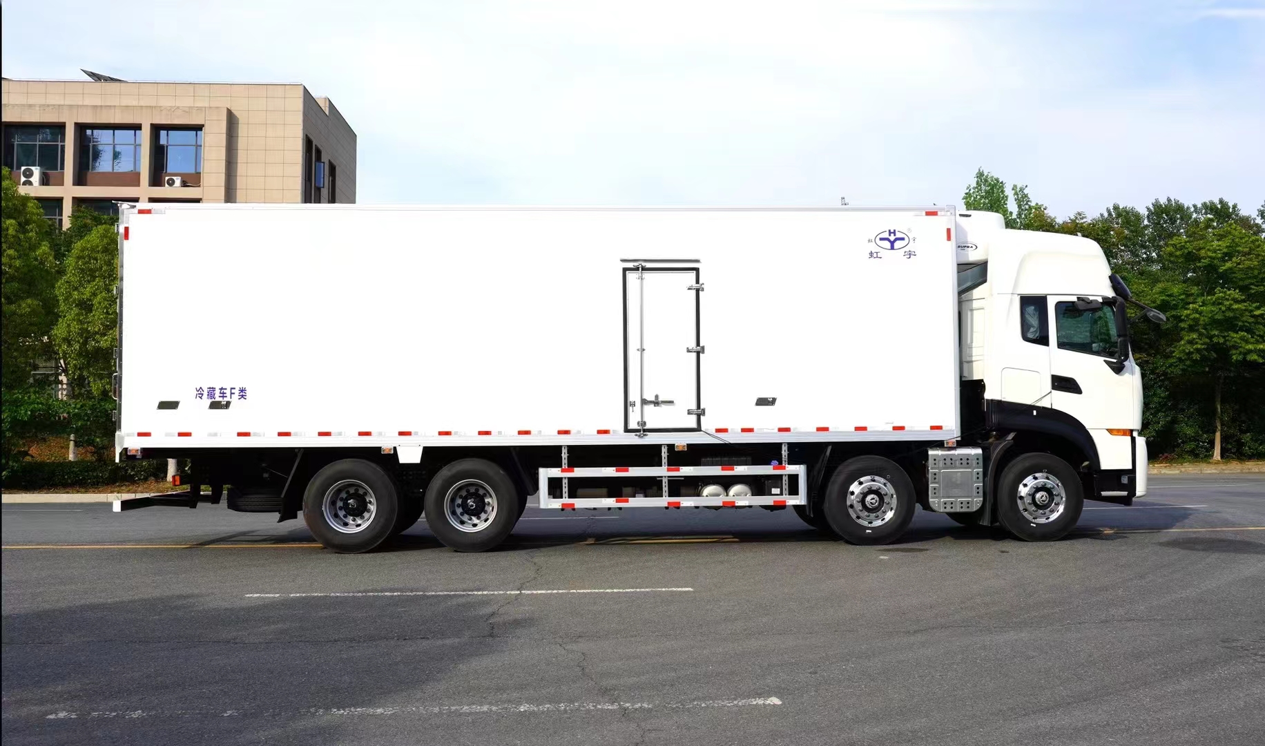 三、選裝配置:可選裝廂體側門(單側門或雙開門),可選裝鋁合金導風槽(導風槽有助于冷氣循環,提升制冷效果),可選裝廂體頂部加固肉勾滑道(直滑道 或 對接互通式拐彎滑道)。可選裝廂體內部采用全面不銹鋼材質(海鮮運輸必須加裝,海水有腐蝕性),可選裝280V-380V外接電源(停車熄火后可插電冷機繼續制冷工作),可選裝溫濕度監控記錄儀(帶打印功能)。