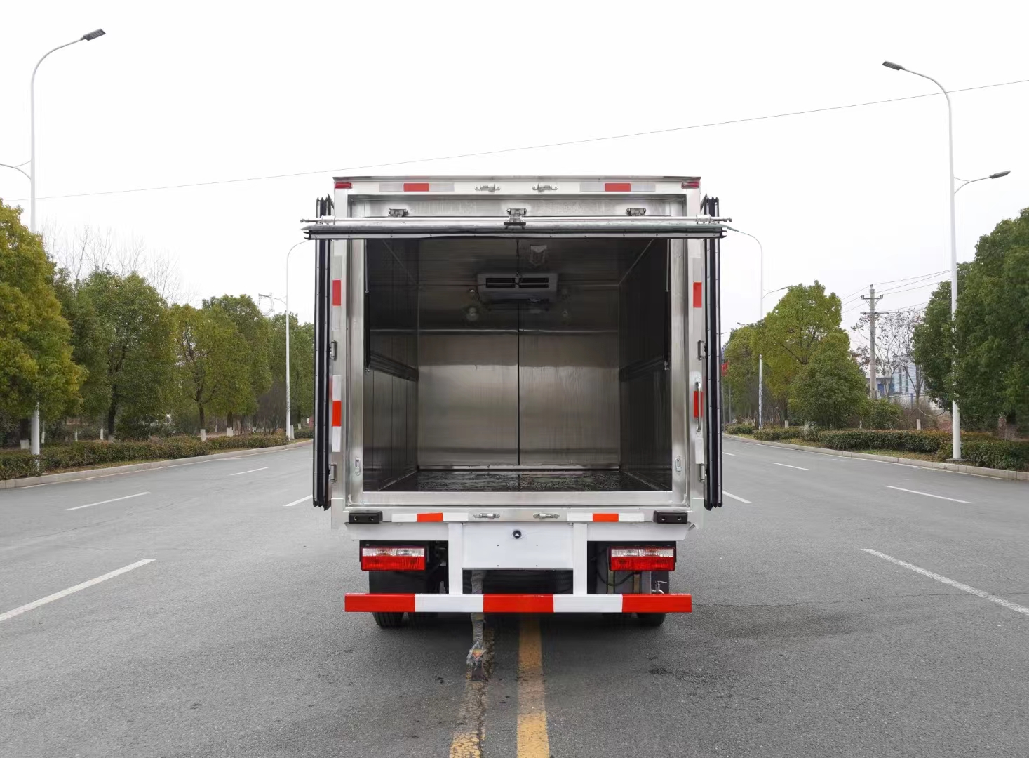 改裝要求:廂體采用內(nèi)不銹鋼外玻璃鋼制作,冷鏈專用保溫板,廂體右側(cè)前開單側(cè)門,紫外線、噴霧消毒,雙層門,廂體兩側(cè)加裝防撞板,廂體密封無(wú)泄漏,鋁合金型材包邊,門框、鎖件為不銹鋼,裝配零下5度制冷機(jī)組,其余標(biāo)配。