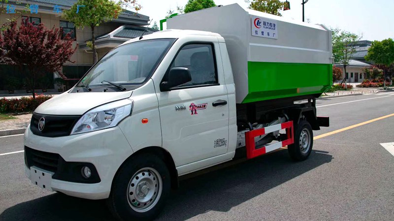 福田祥菱國六3方拉臂式垃圾車采用福田時代系列環衛車專用底盤,祥菱V1-1600駕駛室,軸距3070mm,DAM15KR發動機115馬力、DAT18R-5擋變速箱、175R14輪胎、ABS、電動助力轉向、前穩定桿、油剎,空調。